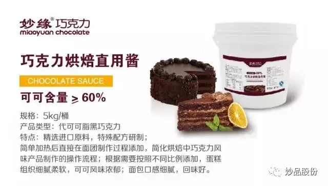 1、蛋糕胚的制作加入妙緣巧克力烘焙直用醬(可可含量≥60%),口感更好。