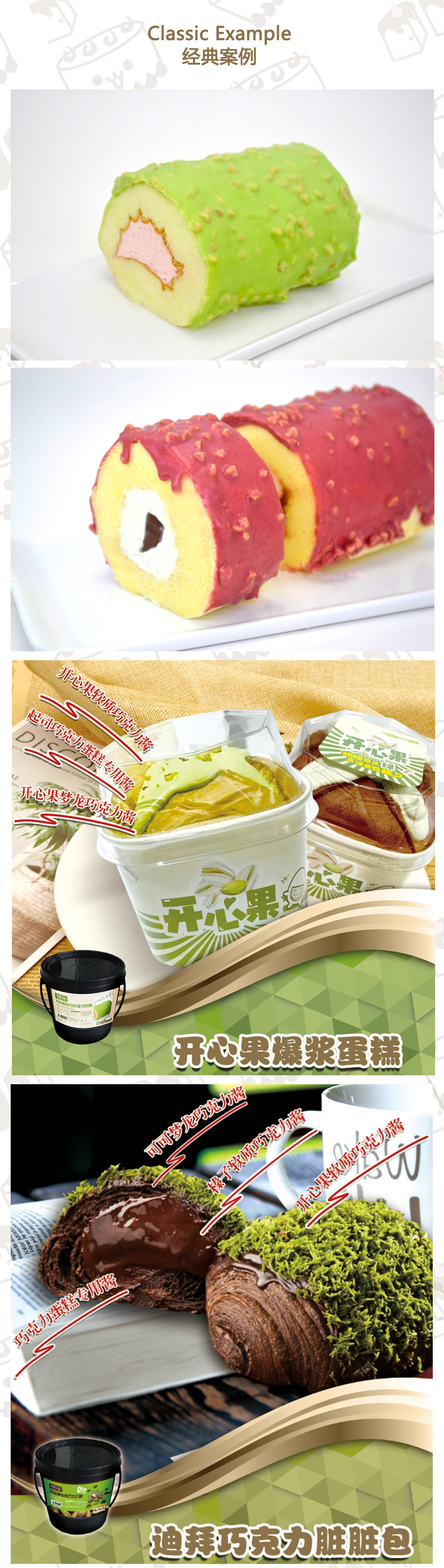產(chǎn)品口味:芝士味、可可味、開心果味,榴蓮味、雙莓味